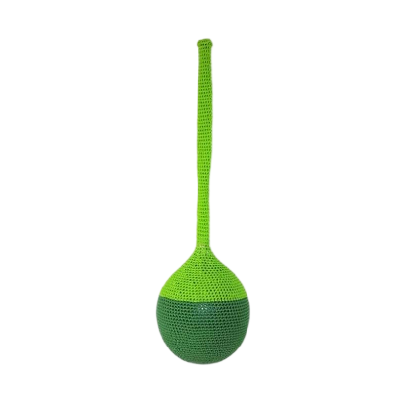 Specially designed for children, the Cocoon is made from a 60 cm diameter PVC balloon, covered with a green mass dyed polyamide net.