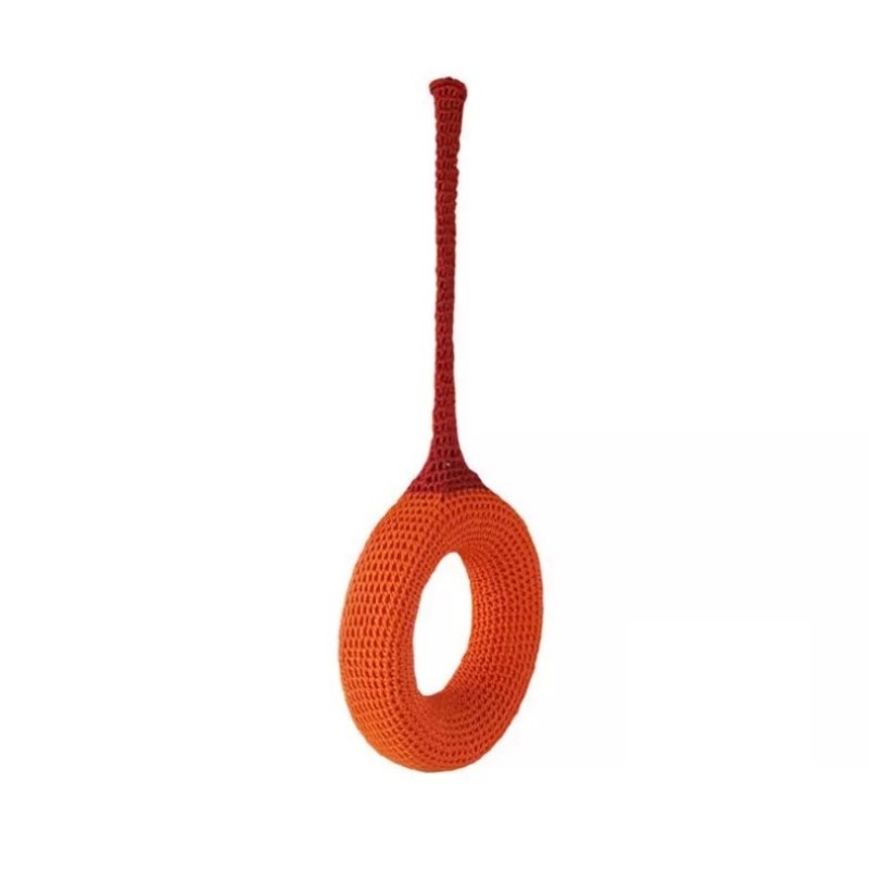 This original module consists of a 55 cm diameter rubber tyre covered with red mass dyed polyamide net and 5 mm braids in 25 mm mesh.