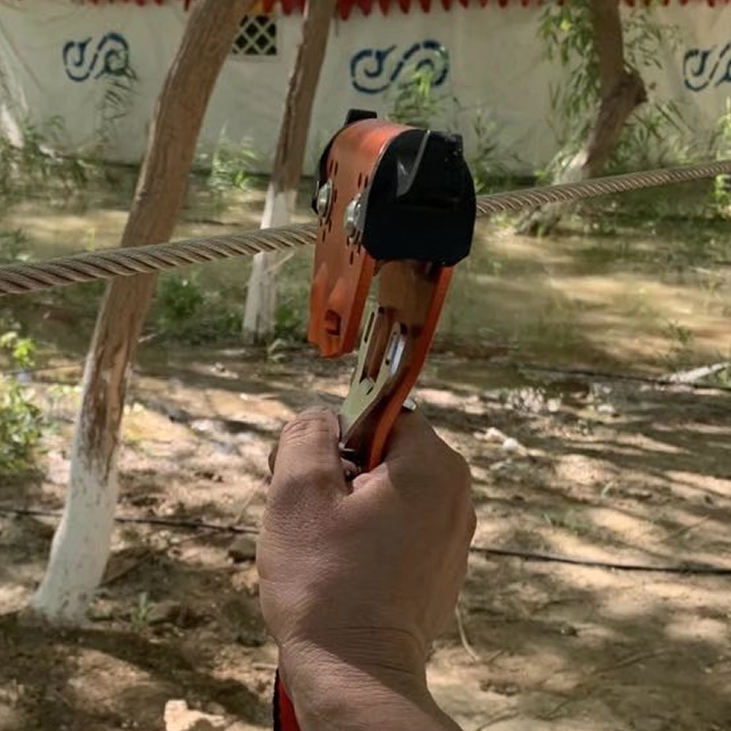 The adventure park uses a dedicated double pulley zip line, with a unique closed structure of straight double pulleys. The pulley and connector are designed in an integrated manner, which can safely lock the door when subjected to force. Can quickly connect ropes and steel cables. The new thermoplastic protective design prevents accidental entanglement between the user’s hair and clothing and the pulley. Side panel aluminum alloy structure main body, high-efficiency stainless steel ball bearings, used for crossing steel cables and ropes.