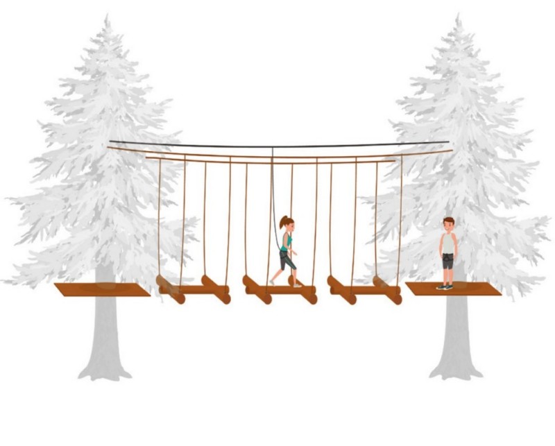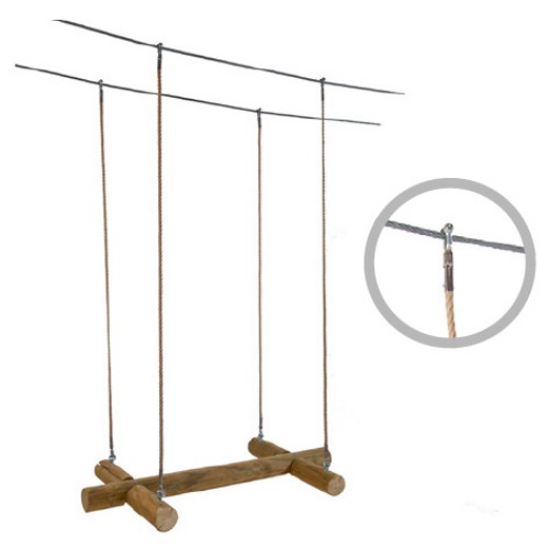 Installed on two wire ropes. The distance between the wire ropes is 60 cm. Slings are 200 cm long.