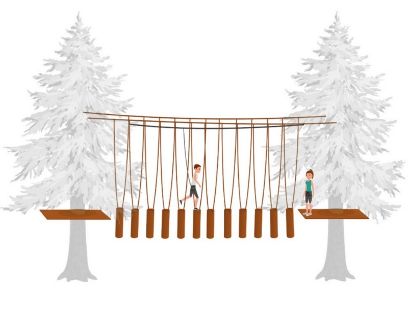 Installed on two wire ropes. Slings are 200 cm long.
