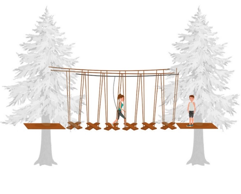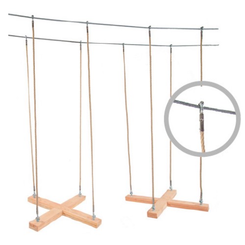 Installed on two wire ropes.The distance between the wire ropes is 60 cm. Slings are 200 cm long.