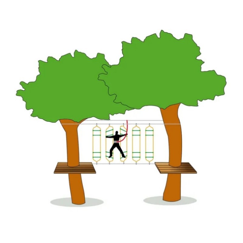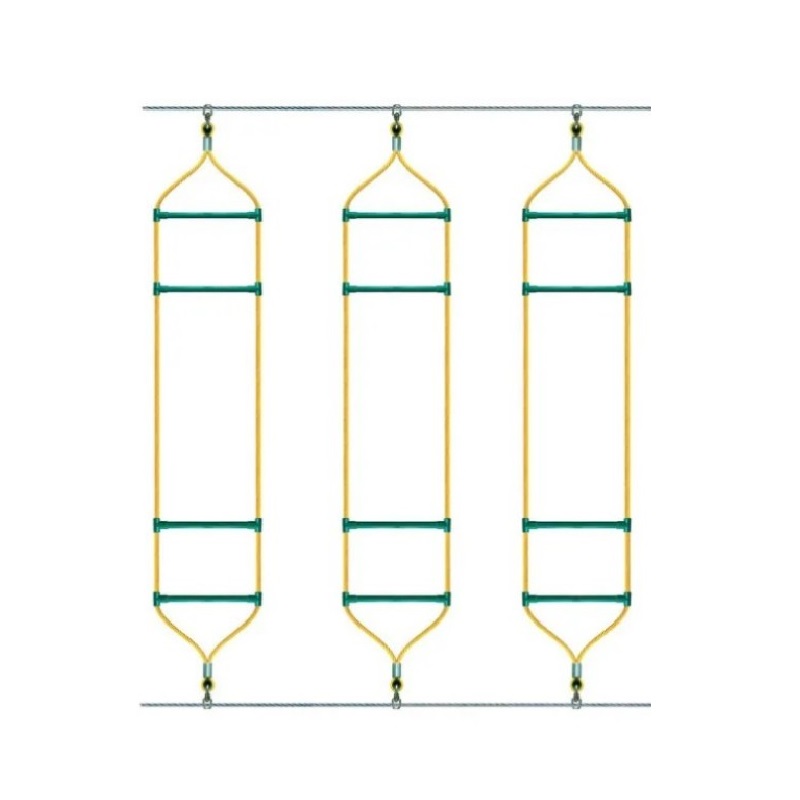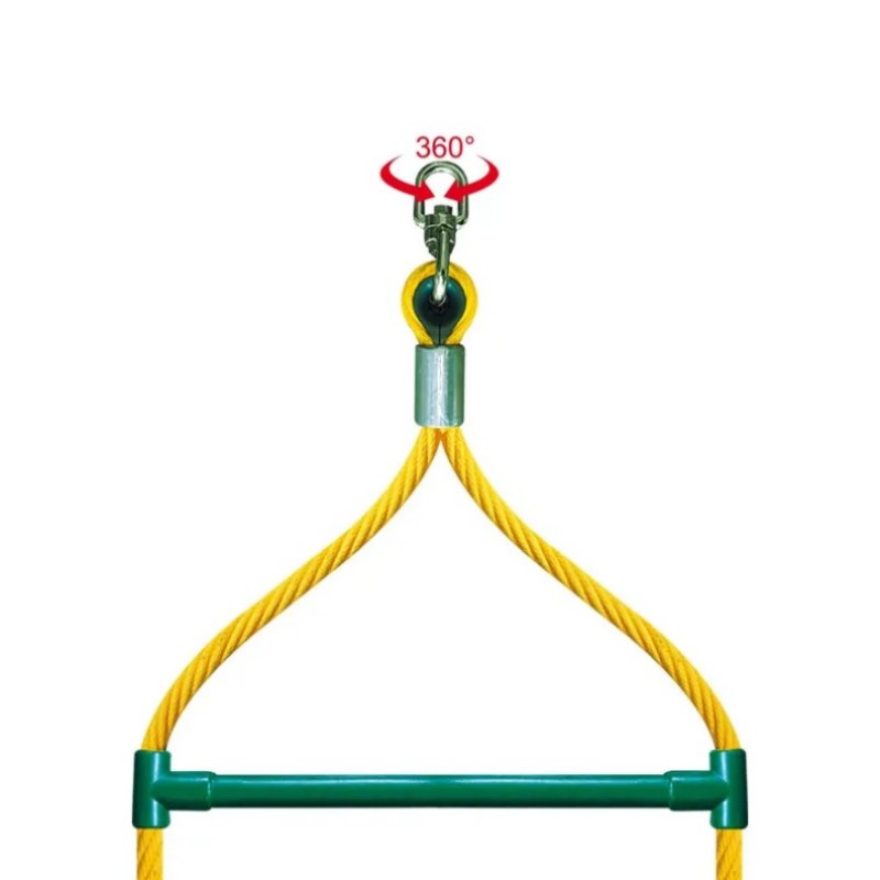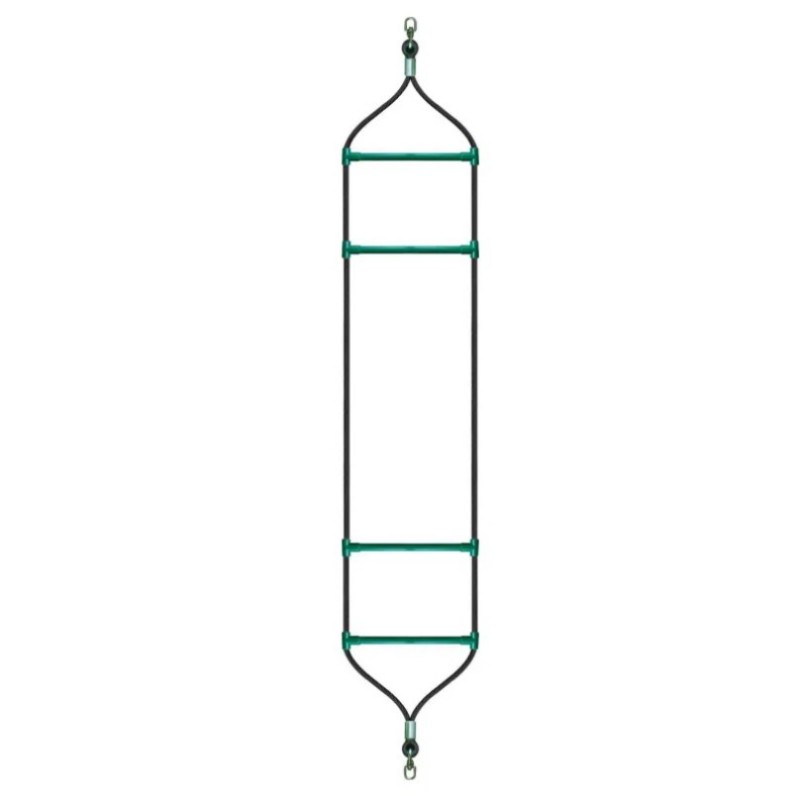 Made of 16 mm diameter reinforced rope with a thimble and swivel, the Swinging Ladder ensures quality and resistance. Each ladder is equipped with green plastic rungs. This play module is 2.40m high and must be set up on 2 parallel ropes with a distance of 40cm.