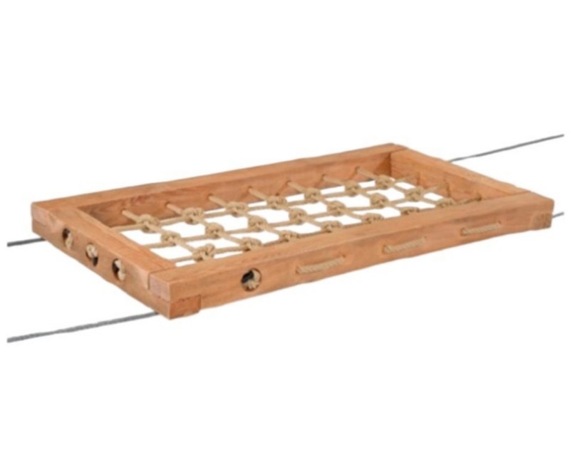 Installed on two wire ropes. The distance between the holes is 60 cm.