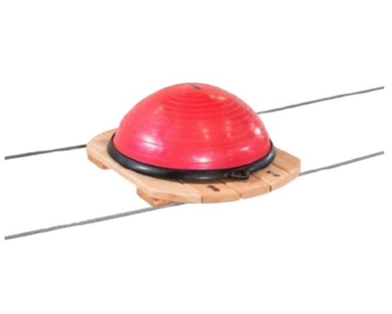 The semicircle is installed on wooden island. Island is made of larch (mélèze) wood and rubber half-balls.