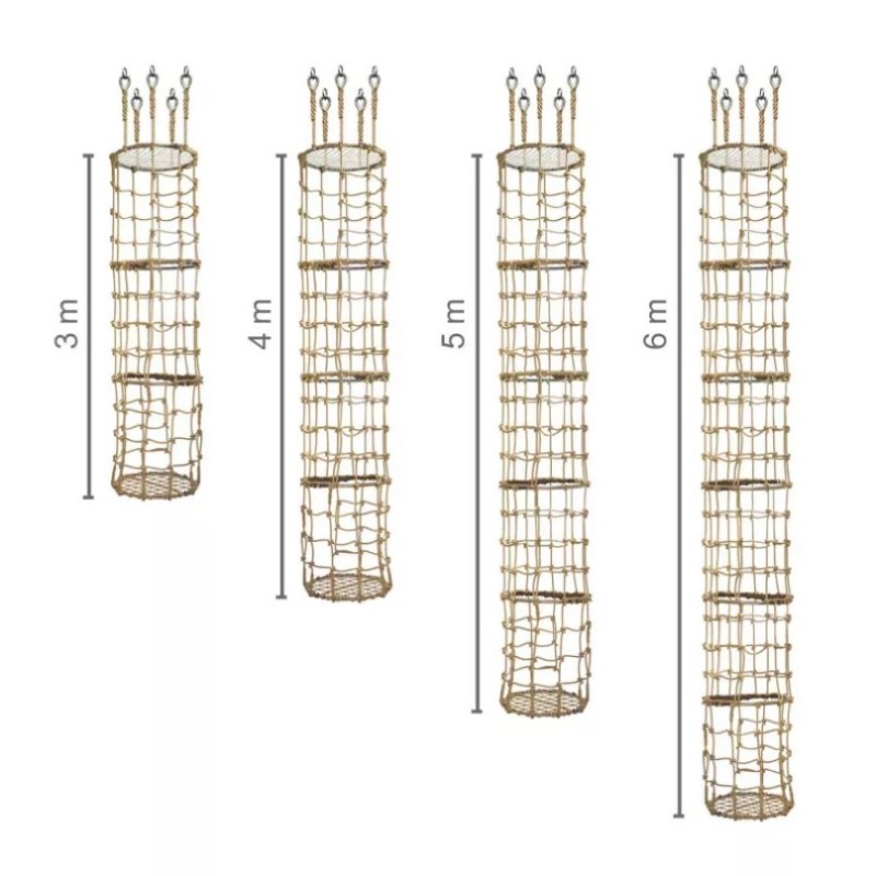 The Chimney – Ø800 mm is designed with 250 mm square mesh rope with a diameter of 16 mm. Customizable, we offer this product in standard polypropylene rope or textured polypropylene rope. According to the height you wish, we realize it with half bearings every meter. They are designed with black rope with a mesh size of 100 mm and a diameter of 12 mm fixed in staggered rows.