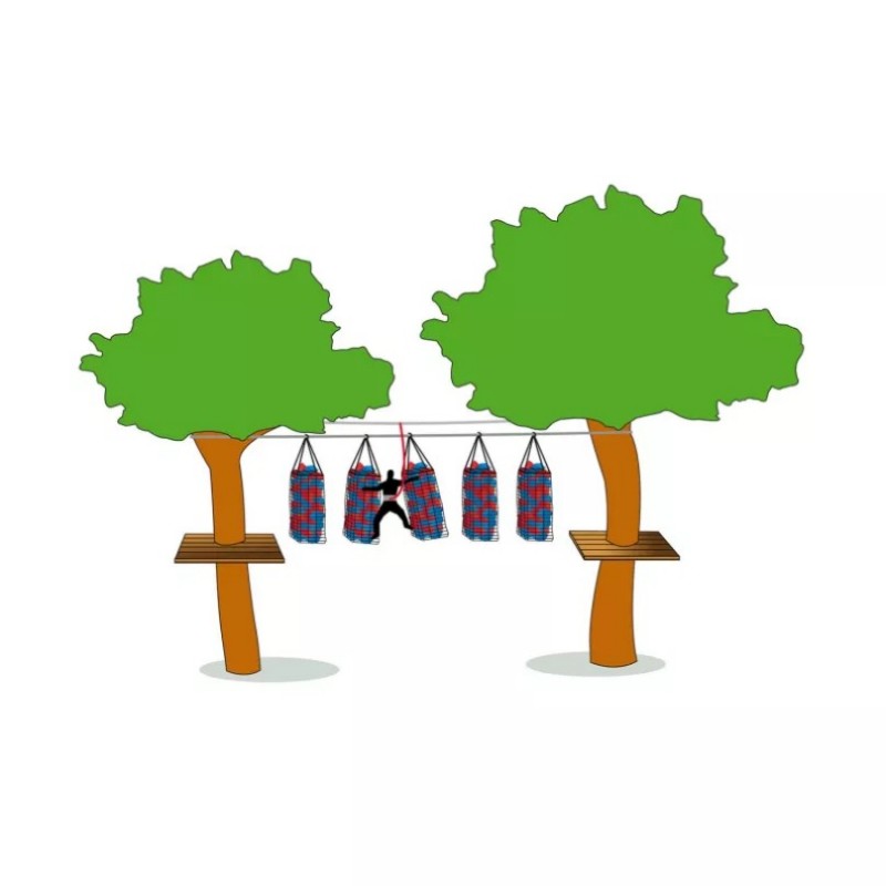 The bags are 2.40 m high and 600 mm in diameter. They are made of 16 mm diameter rope and 150 mm square mesh. They also have 2 lines with heart lugs to attach them to your course.To give consistency to the Color Bag, fill it with the accessory of your choice : coloured foam cubes or Peanuts Balls, the choice is yours!Peanuts Balls option: the balloons are to be inflated by yourself.