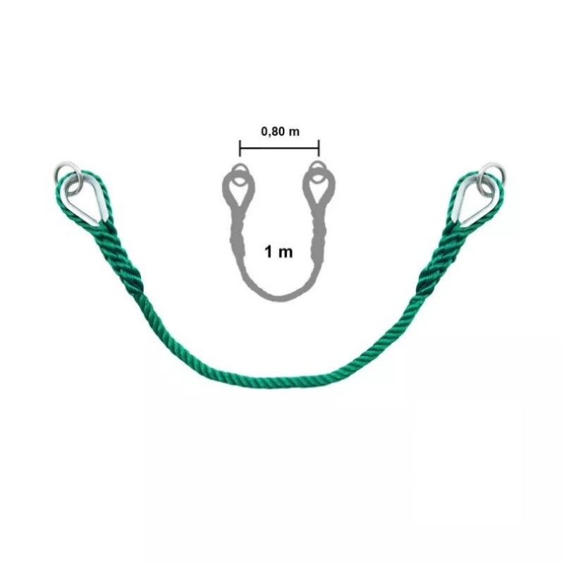 The Crossing Rope is made of dark green polyethylene rope, length 1m. It is provided with thimble eye and suspension ring at each end. Remember to add to your cart the cable ties necessary to set up the module. The fixing material is not supplied with the game module.