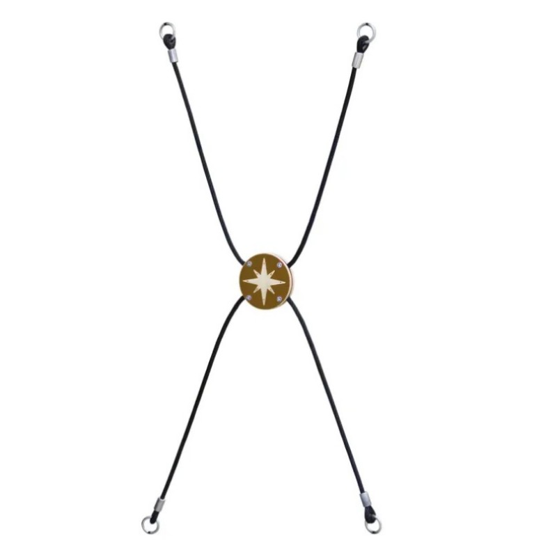 The Star is a module made from Ø16mm diameter reinforced rope, fitted with thimbled loops and fixing rings, with an engraved and varnished outer plywood center.